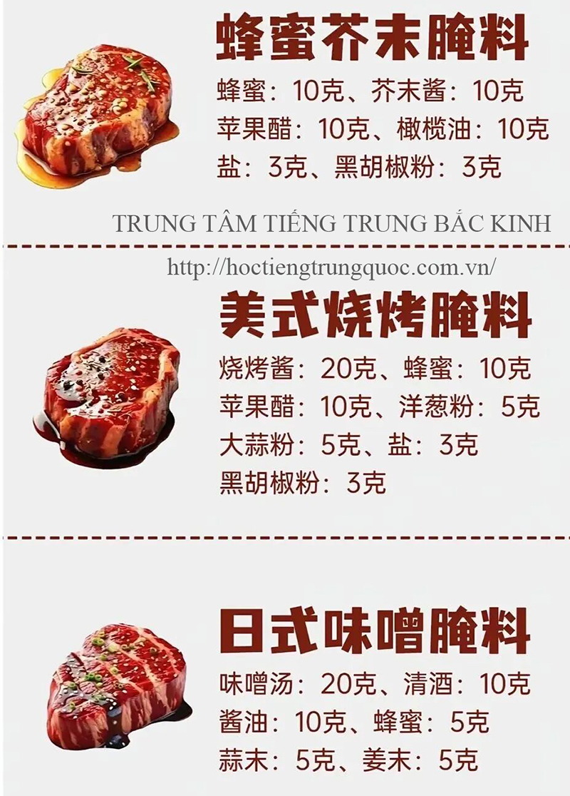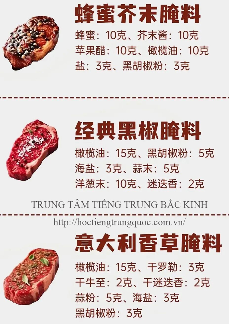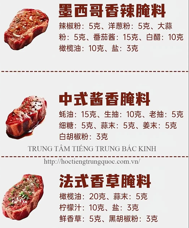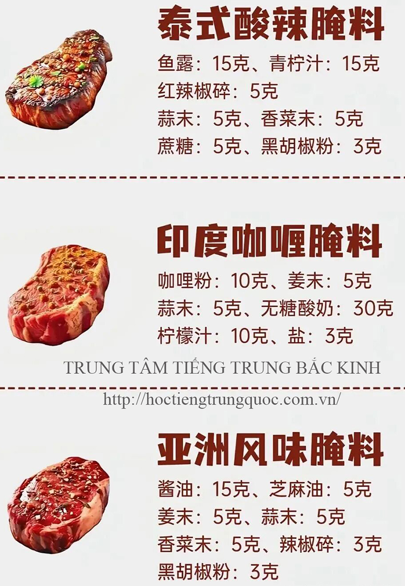 Học tiếng Trung với 12 công thức ướp thịt bò