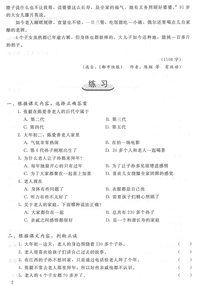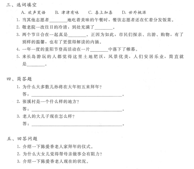 Một bài đọc hiểu và bài tập trong sách Giáo trình đọc hiểu tiếng Hán-tiến bộ từng bước-Tập 6.